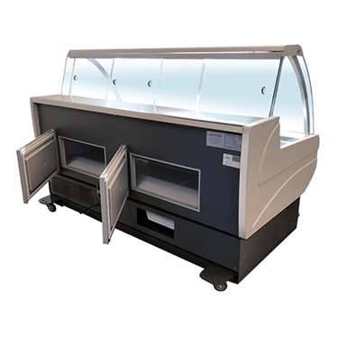Refrigerated under-storage (accessed through rear doors with magnetic gaskets)